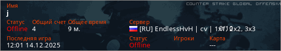 Играет на Counter Strike Global Offensive сервере. Страна: РоссияПервый раз замечен 11:26 14.12.2025
