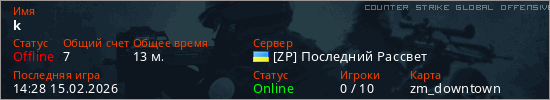 Играет на Counter Strike Global Offensive сервере. Страна: УкраинаПервый раз замечен 22:24 01.02.2026