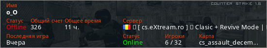 Последний раз был в сети Час назад Игрок с таким ником замечен на 22 серверах