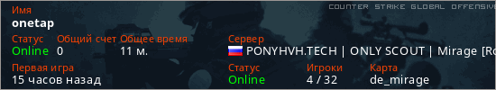 Играет на Counter Strike Global Offensive сервере. Страна: РоссияПервый раз замечен 13:52 27.03.2026