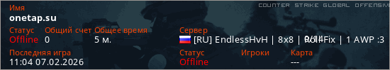 Играет на Counter Strike Global Offensive сервере. Страна: РоссияПервый раз замечен 10:57 07.02.2026