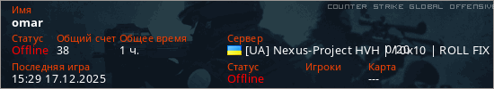 Играет на Counter Strike Global Offensive сервере. Страна: УкраинаПервый раз замечен 15:50 15.12.2025