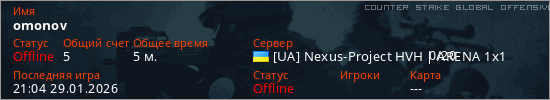 Играет на Counter Strike Global Offensive сервере. Страна: УкраинаПервый раз замечен 21:02 29.01.2026