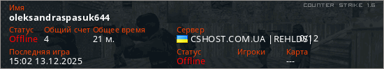 Играет на Counter Strike 1.6 сервере. Страна: УкраинаПервый раз замечен 11:36 13.12.2025