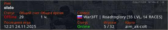 Последний раз был в сети 12:21 24.11.2025 Игрок с таким ником замечен на 28 серверах