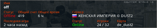Последний раз был в сети 2 часа назад Игрок с таким ником замечен на 28 серверах