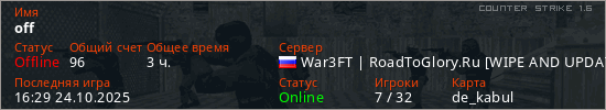 Последний раз был в сети 16:29 24.10.2025 Игрок с таким ником замечен на 27 серверах