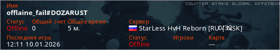 Играет на Counter Strike Global Offensive сервере. Страна: РоссияПервый раз замечен 11:07 10.01.2026