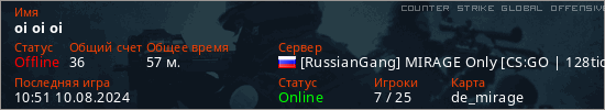 Играет на Counter Strike Global Offensive сервере. Страна: РоссияПервый раз замечен 03:54 14.05.2024