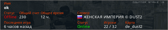 Играет на Counter Strike 1.6 сервере. Страна: РоссияПервый раз замечен 21:49 23.03.2022