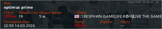 Играет на Counter Strike 1.6 сервере. Страна: СШАПервый раз замечен 22:45 14.03.2026