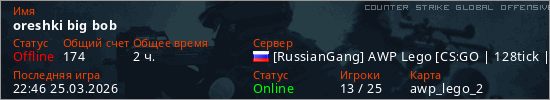 Играет на Counter Strike Global Offensive сервере. Страна: РоссияПервый раз замечен 11:54 11.03.2026