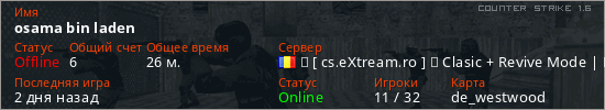 Играет на Counter Strike 1.6 сервере. Страна: РумынияПервый раз замечен 12:04 04.11.2024