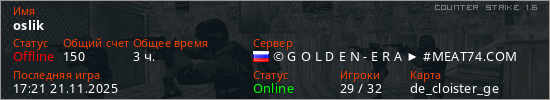 Последний раз был в сети 17:21 21.11.2025 Игрок с таким ником замечен на 6 серверах