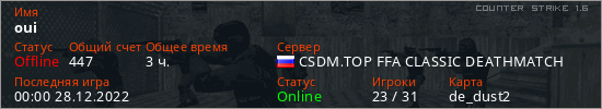 Играет на Counter Strike 1.6 сервере. Страна: РоссияПервый раз замечен 23:42 16.12.2019