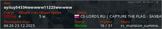 Общая информация игрока