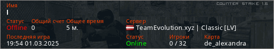 Играет на Counter Strike 1.6 сервере. Страна: ЛатвияПервый раз замечен 19:39 01.03.2025