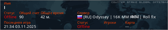 Играет на Counter Strike Global Offensive сервере. Страна: РоссияПервый раз замечен 19:54 31.10.2025