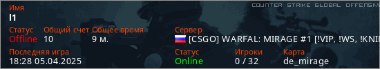 Играет на Counter Strike Global Offensive сервере. Страна: РоссияПервый раз замечен 18:15 05.04.2025