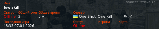 Играет на Counter Strike 1.6 сервере. Страна: УкраинаПервый раз замечен 18:21 07.01.2026