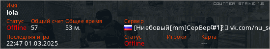 Играет на Counter Strike 1.6 сервере. Страна: РоссияПервый раз замечен 16:41 11.09.2022