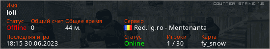 Играет на Counter Strike 1.6 сервере. Страна: РумынияПервый раз замечен 14:08 17.04.2023