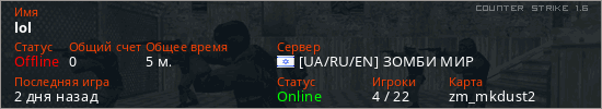 Последний раз был в сети 2 дня назад Игрок с таким ником замечен на 64 серверах