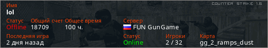 Последний раз был в сети 2 дня назад Игрок с таким ником замечен на 66 серверах