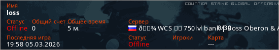 Играет на Counter Strike Global Offensive сервере. Страна: РоссияПервый раз замечен 19:56 05.03.2026