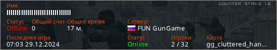 Играет на Counter Strike 1.6 сервере. Страна: РоссияПервый раз замечен 13:57 09.02.2024
