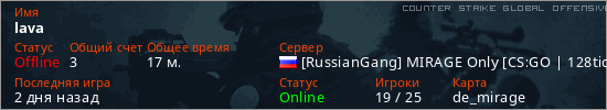 Играет на Counter Strike Global Offensive сервере. Страна: РоссияПервый раз замечен 21:02 08.03.2026