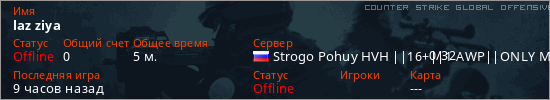 Играет на Counter Strike Global Offensive сервере. Страна: РоссияПервый раз замечен 16:28 21.01.2026