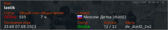 Последний раз был в сети 23:40 07.08.2023 Игрок с таким ником замечен на 20 серверах