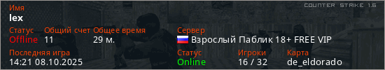 Последний раз был в сети 14:21 08.10.2025 Игрок с таким ником замечен на 21 сервере