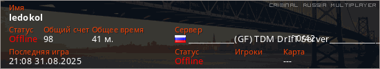 Играет на Criminal Russia Multiplayer сервере. Страна: РоссияПервый раз замечен 17:31 31.08.2025