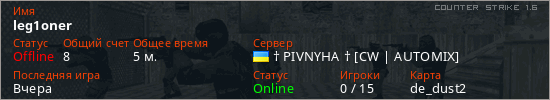 Играет на Counter Strike 1.6 сервере. Страна: УкраинаПервый раз замечен 22:45 20.04.2026