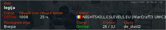 Последний раз был в сети Вчера Игрок с таким ником замечен на 8 серверах