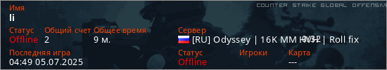 Играет на Counter Strike Global Offensive сервере. Страна: РоссияПервый раз замечен 23:45 04.07.2025