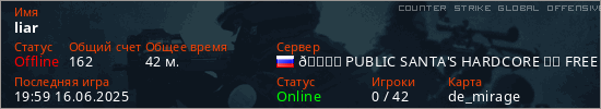 Играет на Counter Strike Global Offensive сервере. Страна: РоссияПервый раз замечен 14:52 11.06.2025