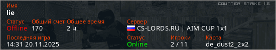 Последний раз был в сети 14:31 20.11.2025 Игрок с таким ником замечен на 12 серверах