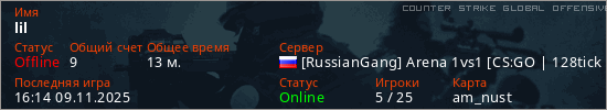 Играет на Counter Strike Global Offensive сервере. Страна: РоссияПервый раз замечен 17:24 09.09.2024