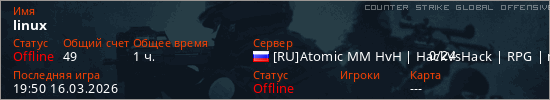 Играет на Counter Strike Global Offensive сервере. Страна: РоссияПервый раз замечен 15:30 13.03.2026