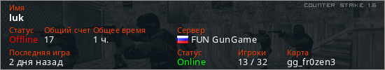 Последний раз был в сети 2 дня назад Игрок с таким ником замечен на 15 серверах