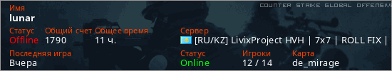 Играет на Counter Strike Global Offensive сервере. Страна: КазахстанПервый раз замечен 20:30 22.06.2025