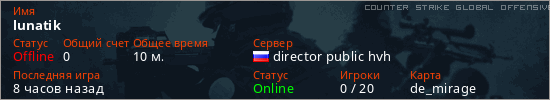 Последний раз был в сети 7 часов назад Игрок с таким ником замечен на 12 серверах