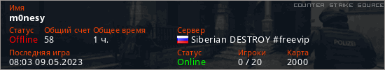 Играет на Counter Strike Source сервере. Страна: РоссияПервый раз замечен 14:23 04.03.2023