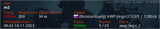 Играет на Counter Strike Global Offensive сервере. Страна: РоссияПервый раз замечен 15:34 20.10.2023