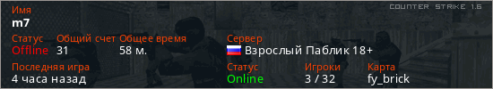 Последний раз был в сети 2 часа назад Игрок с таким ником замечен на 30 серверах