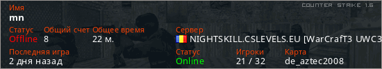 Последний раз был в сети 2 дня назад Игрок с таким ником замечен на 14 серверах
