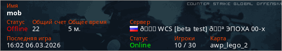 Играет на Counter Strike Global Offensive сервере. Страна: РоссияПервый раз замечен 16:00 06.03.2026